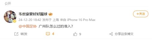 有內情?韋世豪質問中國足協(xié):廣州隊怎么過的準入? ???